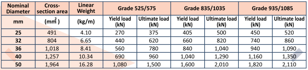 - High Tensile fully threaded bars available in three grades for passive and active (pre-tensioned) anchors. Higher grades & higher sizes are also available on request.